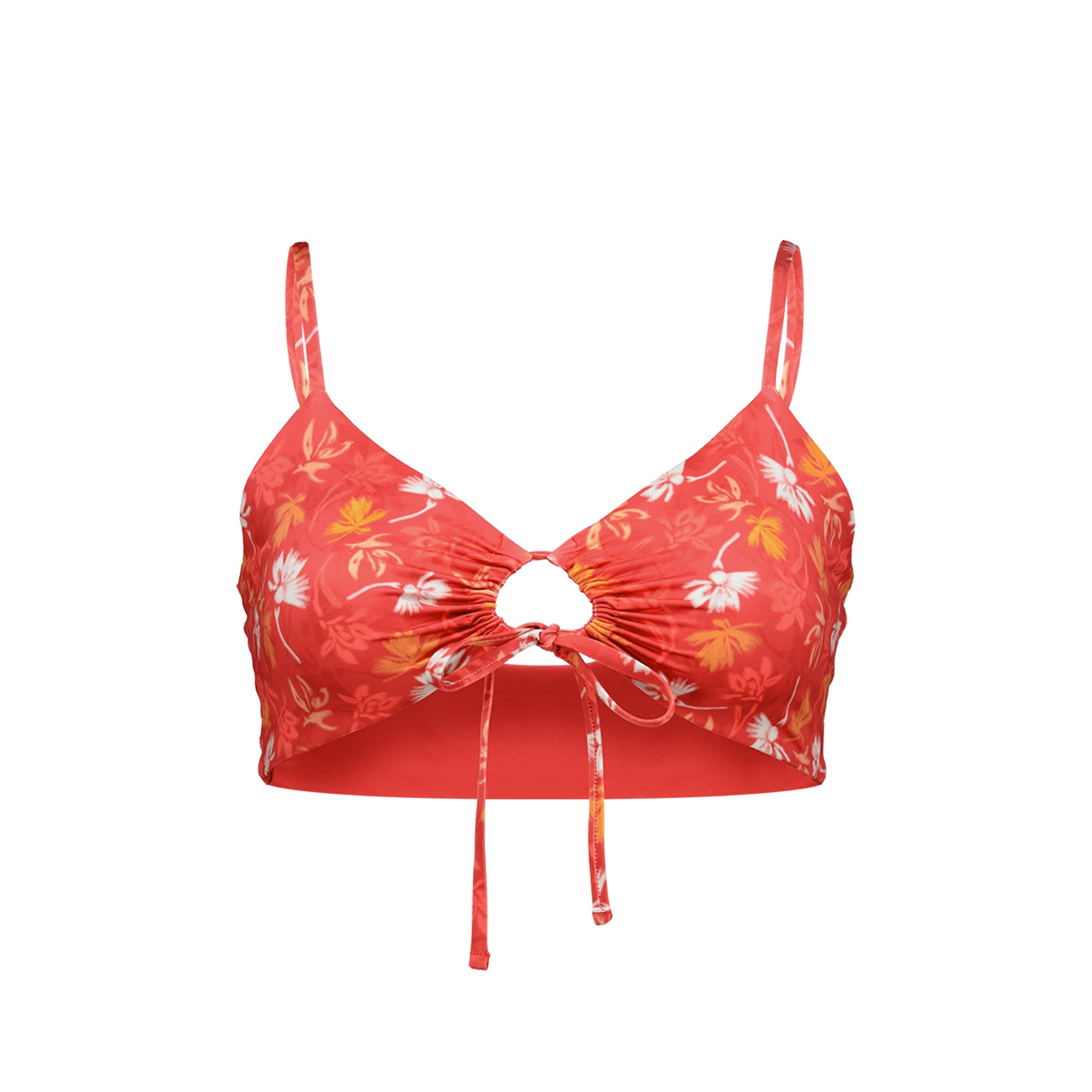Top de traje de baño con detalle en la parte delantera y tirantes ajustables.